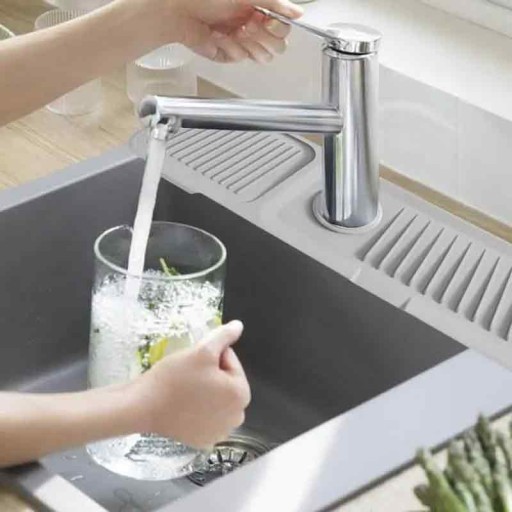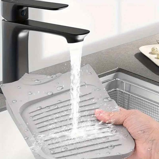 Elastyczny Materiał: Wykonana z elastycznego silikonu, mata dopasowuje się do większości kranów, zapewniając wszechstronne zastosowanie w kuchni i łazience.