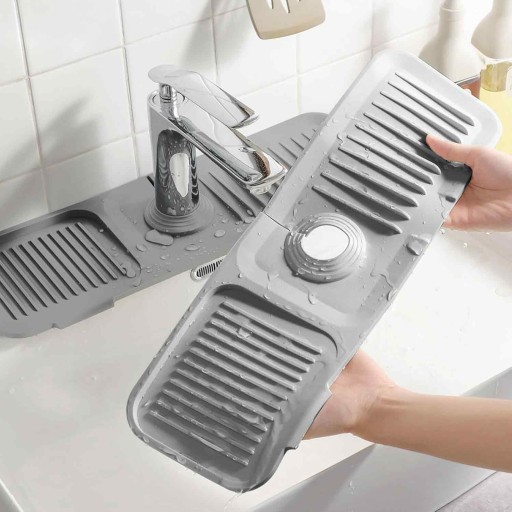 Silikonowa mata, na zlew, ociekacz pod kran, mata ochronna, szara, do kuchni, do łazienki