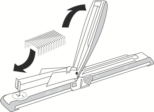 - Łatwa do regulowacji prowadnica do formatów A6, A2, US i folio