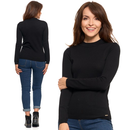 PÓŁGOLF SWETER DAMSKI GŁADKI DLA NIEJ MORAJ WISKOZA DŁUGI RĘKAW BLACK M