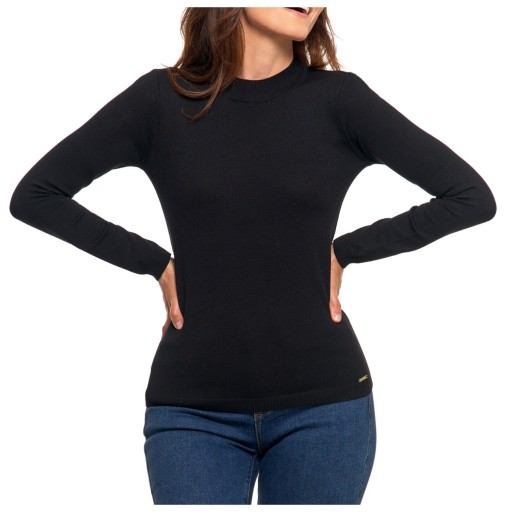 Damski sweter z długim rękawem w klasycznym czarnym kolorze to doskonała propozycja dla kobiet ceniących sobie elegancję i wygodę. Wykonany z wysokiej jakości wiskozy z domieszką, sweter jest miękki w dotyku i delikatnie otula sylwetkę, zapewniając komfort noszenia przez cały dzień. Dzięki elastycznej tkaninie, idealnie dopasowuje się do kształtu ciała, podkreślając kobiece atuty.