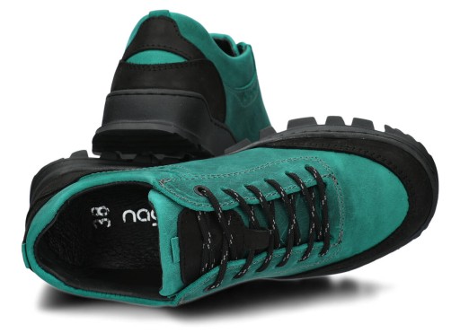 NAGABA 0521 SZMARAGDOWY - WYGODNE, SKÓRZANE PÓŁBUTY TREKKINGOWE DAMSKIE