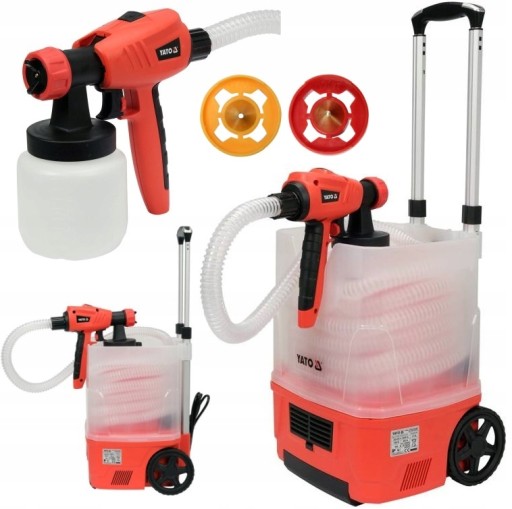 - Zawartość zestawu: agregat malarski, pistolet natryskowy, wąż łączący pistolet z agregatem, wiskozymetr, dysza x3