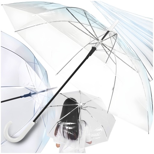 Dzięki przezroczystemu designowi, parasolka pozwala cieszyć się widokiem bez przeszkód, a jej 8 solidnych ramion gwarantuje wytrzymałość i stabilność nawet przy silnym wietrze. Lekka i poręczna, doskonała na co dzień. Idealna dla tych, którzy cenią sobie styl i funkcjonalność.