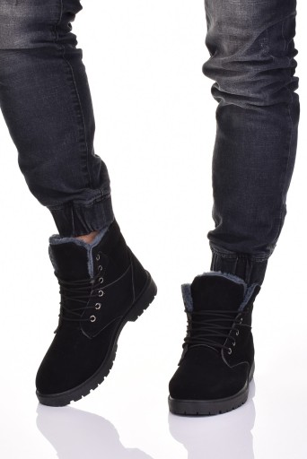 Botki wykonane zostały ze skóry ekologicznej zamszowej, podeszwa gumowa z agresywnym bieżnikiem.
