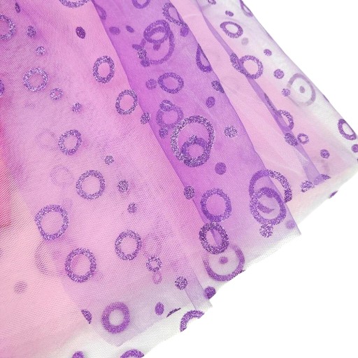 ⭐Spódnica składa się z kilku warstw tiulu, co nadaje sukni objętości i sprawia, że pięknie układa się w ruchu. Zewnętrzna warstwa z fioletowego tiulu zdobiona jest subtelnymi, brokatowymi wzorami.