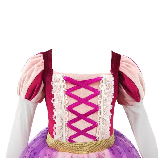 ⭐Sukienka zachwyca połączeniem intensywnego różu, fioletu i bieli, które nawiązują do klasycznej stylizacji Roszpunki.