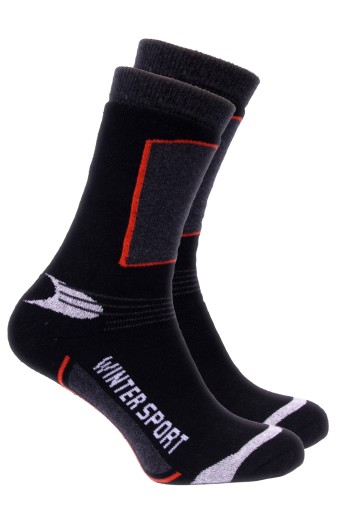 Zimowe skarpety TERMO są ciepłe, przyjemnie się noszą i chronią przed zimnem. Ściągacz zapewnia komfort stopie na wiele godzin. Część palcowa połączona jest ze skarpetą skarpetą PŁASKIM SZWEM, co zapobiega otarciom.