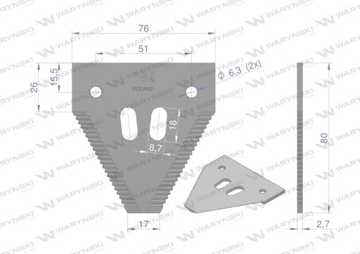 Nóż żniwny ostrza ząbkowane na wierzchu zastosowanie 420100045 System Schumacher John Deere Deutz Fahr WARYŃSKI ( sprzedawane po 25 )