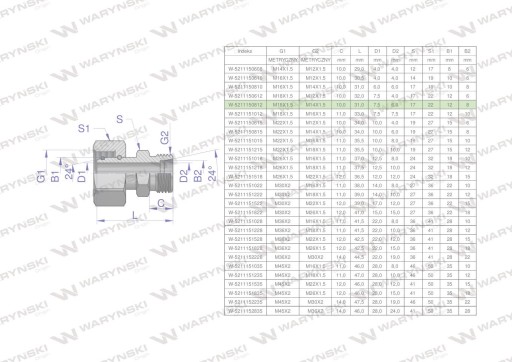 Złączka hydrauliczna metryczna AB (XKOR) A-M18x1.5 12L / B-M14x1.5 08L Waryński. Elementy złączne zostały zaprojektowane i wykonane zgodnie z obowiązującymi normami, które szczegółowo opisują wymagania jakościowe i wymiarowe. Są kompatybilne z elementami złącznymi innych renomowach producentów hydrauliki siłowej. WARYNSKI