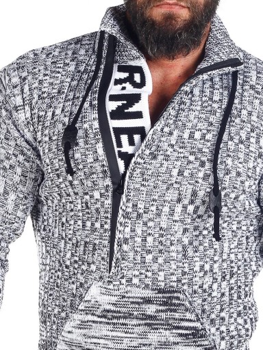 СВИТЕР МУЖСКОЙ ПЛОТНЫЙ С ВОРОТНИКОМ СТОЙКОЙ, СЕРЫЙ - 4XL