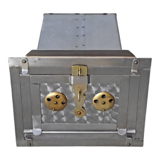 Piekarnik do kuchni kaflowej z czarnej blachy. Estetycznie wykonany front ma grubość blachy około 2 - 2,5mm, natomiast wkład około 0,8mm.
