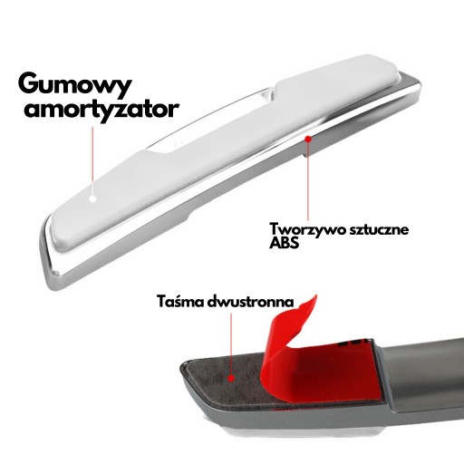 Powierzchnia odbojnika jest lekko zaoblona dla lepszego dopasowania do krzywizny drzwi.