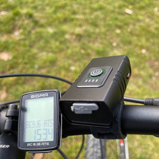 Przednia lampka rowerowa posiada wbudowany akumulator o dużej pojemności, który jest ładowany poprzez port USB. Wystarczy zdjąć lampkę z roweru i podpiąć ją do ładowania pod komputer, kostkę ładowarki czy powerbanku. Kolejną zaletą lampy jest jej szybkie ładowanie.