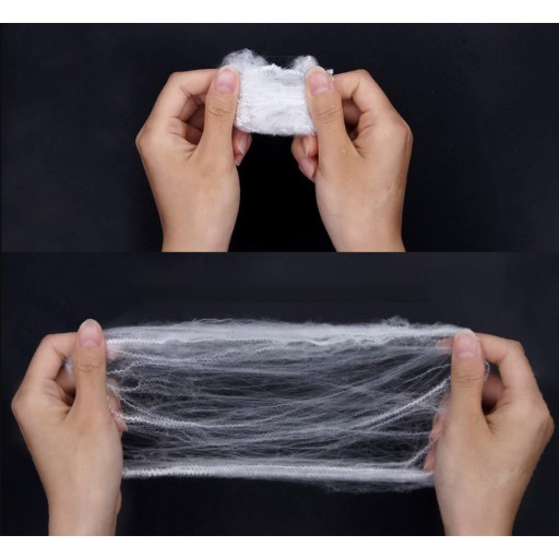 - 60 GRAM PAJĘCZYNY – w zestawie jest aż 60 gram pajęczyny. Materiał rozciąga się bardzo mocno, można go rozciągać i rwać. Prezentowana pajęczyna jest bezpieczna i prosta w użyciu, materiał po rozwinięciu pozwala na przygotowanie do 2,5 m2 realistycznie wyglądającej pajęczyny.
