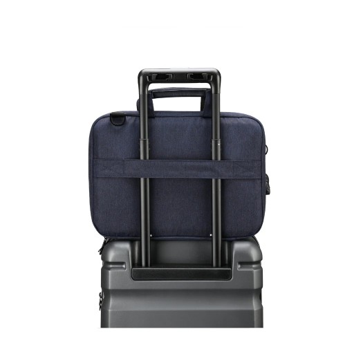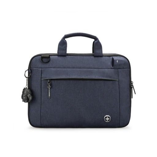 Torba na laptopa BOLLIGEN Navy Blue 16" to stylowa torba idealna dla studentów i osób pracujących. Z portem ładowania USB możesz ładować i używać urządzeń elektronicznych, takich jak smartfony, tablety i czytniki Kindle w podróży. Powerbank nie jest dołączony ani wymagany. Inteligentny system Add-A-Bag ułatwia podróżowanie z wieloma bagażami poprzez łatwe połączenie z walizką za pomocą wbudowanego paska na bagaż.