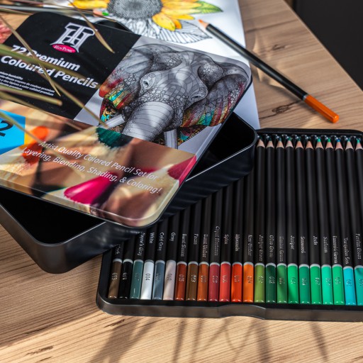 KREDKI OŁÓWKOWE ARTYSTYCZNE PROFESJONALNE ZESTAW W METALOWYM ETUI 72 szt