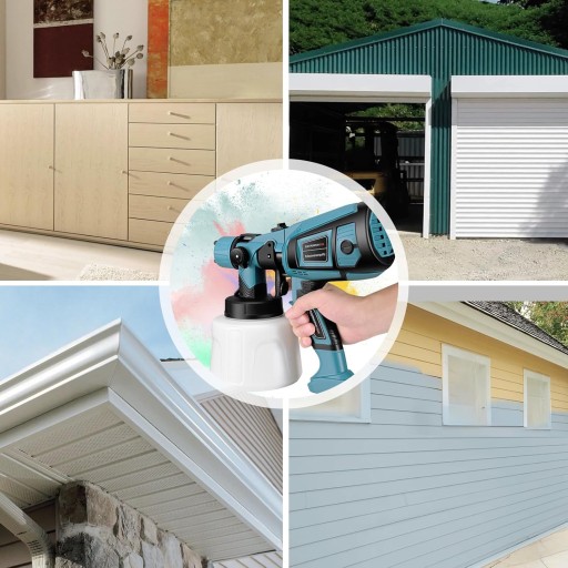 - Bezprzewodowy opryskiwacz nadaje się do malowania drzwi, okien, ścian, ogrodzeń, podłóg, sufitów, podłóg, szafek, mebli domowych i innych przedmiotów.