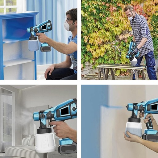 - Bezprzewodowy rozpylacz farby jest łatwy w instalacji, nawet jeśli jesteś początkującym, bezprzewodowa konstrukcja pozwala na swobodne korzystanie z niego na zewnątrz.