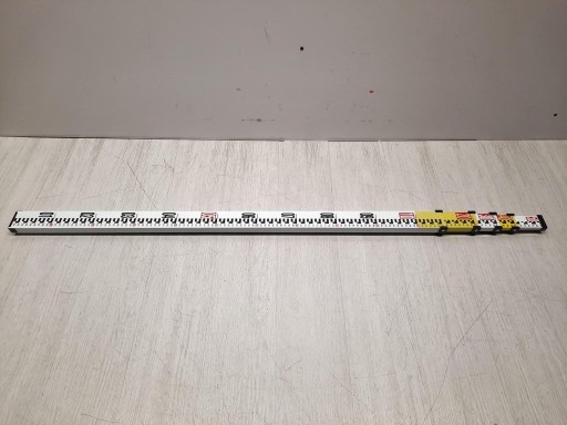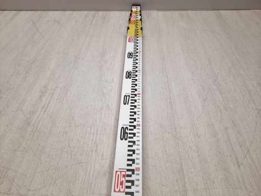 Łata ma 5 teleskopowych sekcji, które rozciągają się do 5 m i składają się do 1,2 m. Belka posiada podziałki po obu stronach - jedna strona z czerwono-czarną podziałką E na białym tle do pomiaru niwelacji, a druga strona z jedną ósmą cala do pomiaru wysokości.