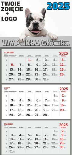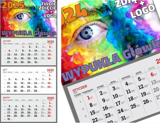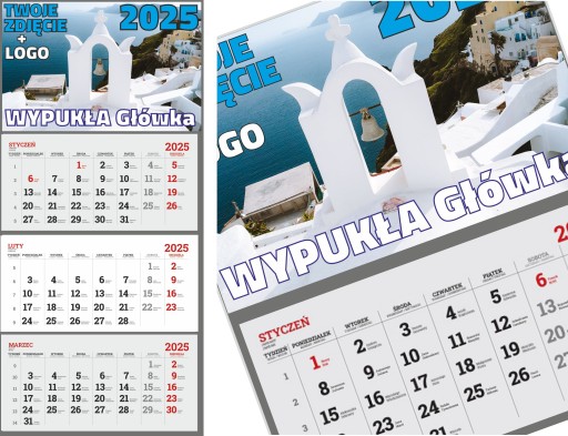 KALENDARZ TRÓJDZIELNY 2025 - model STANDARD z WYPUKŁĄ główką - 100 sztuk