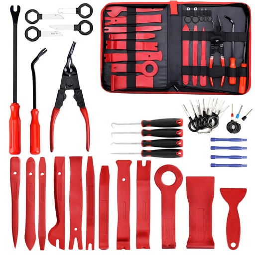 Zestaw ściągaczy do tapicerki (38 elementów) to proste rozwiązanie, które pozwala demontować wnętrze auta bez pęknięć, bez nerwów i bez niszczenia plastików.