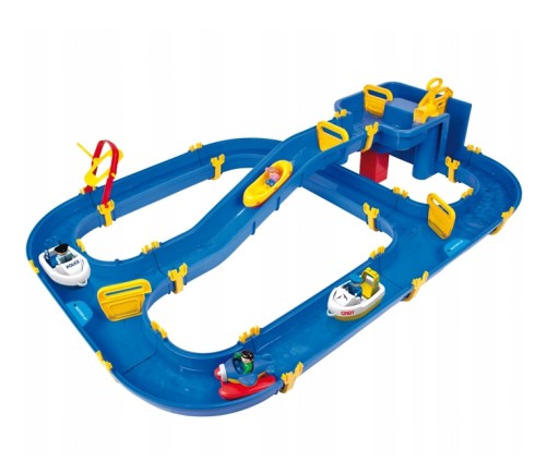 Dziecko wlewając wodę powoduje ruch, dzięki któremu poruszają znajdujące się w kanałach łódki. Prąd wody w kanale można uzyskać także wprawiając w ruch koło wodne. Niezwykła wodna piaskownica niemieckiego producenta zabawek dla dzieci firmy Big.