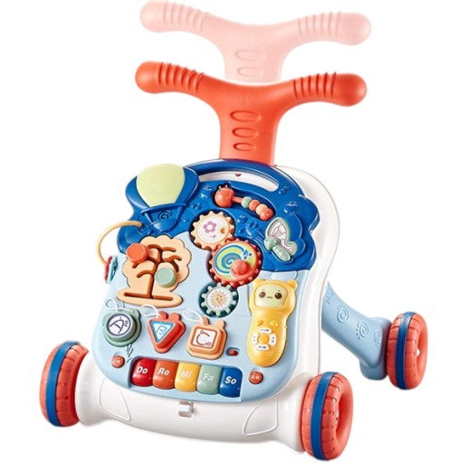 - Funkcjonalna pomoc w nauce chodzenia - ten wózek do nauki chodzenia dla niemowląt łączy w sobie chodzik i panel do zabawy. Inaczej niż tradycyjny zaokrąglony przyrząd do nauki chodzenia, który koncentruje się na czubkach palców, ten przyrząd do nauki chodzenia pozwala maluchowi chodzić podczas pchania i wywiera wyważoną siłę na obu stopach, Struktura piramidy umożliwia trzy punkty podpierające ciało i zapobieganie przewróceniu się.