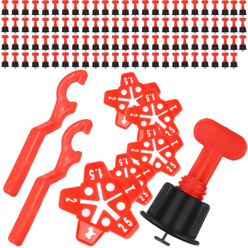 - UNIWERSALNY ZESTAW – znajdujące się w zestawie klipsy sprawdzą się bardzo dobrze do poziomowania wszelkiego rodzaju płytek, glazury oraz kafelków o grubości 3 - 16 mm, dzięki czemu znacznie ułatwiają pracę i zwiększają jej dokładność, sprawiając, że praca tego typu jest mniej czasochłonna i zdecydowanie mniej żmudna. Naszego zestawu możesz używać zarówno do poziomowania płytek na podłodze jak i na ścianach!