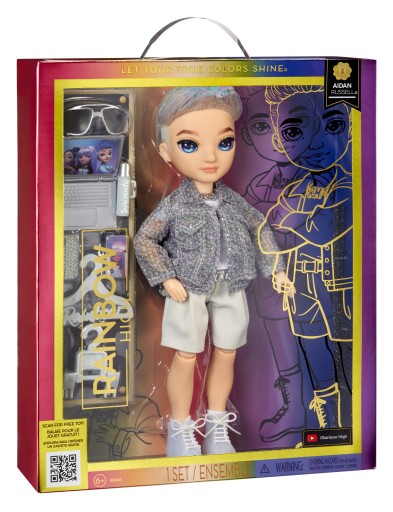 W Rainbow High uczniowie są kreatywni i wyrażają swoje pasje poprzez koncentrację. Aidan jest projektantem mody i jest gotowy do akcji na wybiegu.