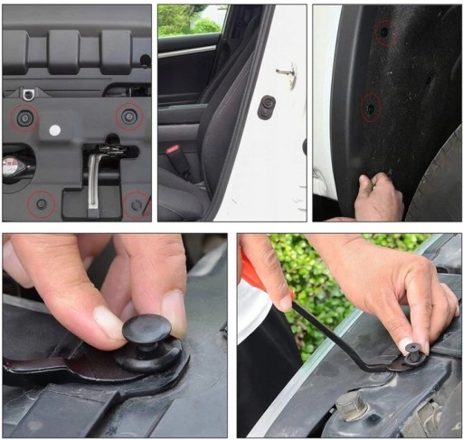 Doskonałe dopasowanie: Elementy w zestawie zostały starannie dobrane, aby pasowały do różnych modeli i marek samochodów. Niezależnie od typu tapicerki czy roku produkcji pojazdu, nasze spinki, kołki i klipsy zapewnią precyzyjne i bezpieczne mocowanie.