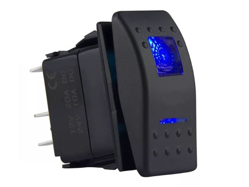Hermetyczny przełącznik ON-OFF 3 pinowy z podświetleniem LED. Działa tylko podczas ręcznego przytrzymania w pozycji dolnej ON, po puszczeniu przełącznika samodzielnie powraca do pozycji górnej OFF. W naszej ofercie również kompatybilne ramki do przełączników (kody 04009, 04010, 04011, 04012, 04013).