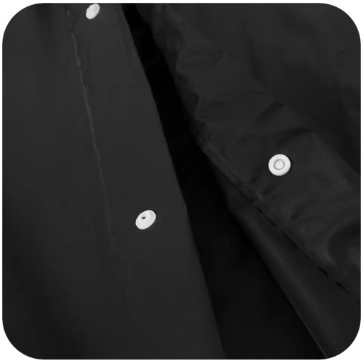 ➖ Nasz płaszcz wyposażony jest w wygodne zatrzaskowe guziki, co sprawia, że ubieranie i zdejmowanie go jest szybkie i łatwe, jednocześnie zapewniając pewne zamknięcie, które nie przepuszcza deszczu.