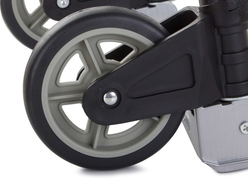 Duże, gumowe kółka sprawiają, że wózek prowadzi się lekko i dobrze się nim manewruje.
