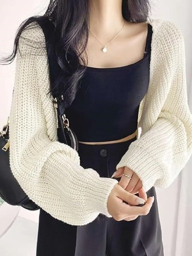 Cropped Solid Knit Sweater Open Front Long Sleeve Sweater Women's Clothing