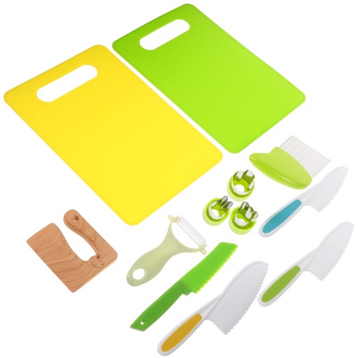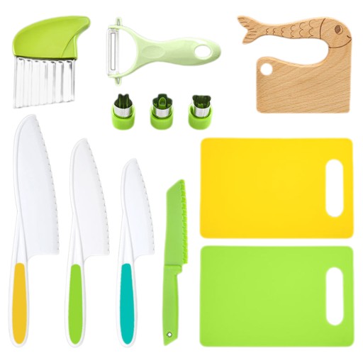 ✅1 x nóż do drewna 3 x foremki 1 x obieraczka 4 x krajarki 1 x nóż do fałdowania 2 x deski do krojenia