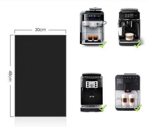 - Nasze maty są idealne do umieszczenia pod ekspresami do kawy i robotami kuchennymi o wymiarach mniejszych niż 47 x 29 cm.