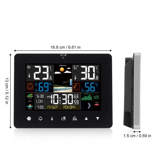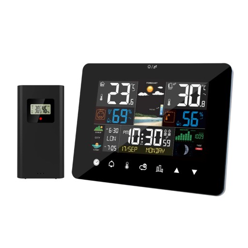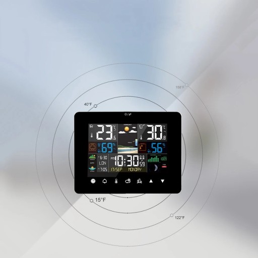 🌥️Duży wyświetlacz z podświetleniem LED, duży kąt widzenia i wysokie nasycenie kolorów, przyciski dotykowe zapewniające bezproblemową obsługę.