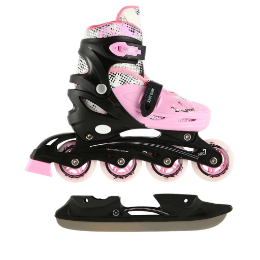 NH18331 Set Nils Extreme to łyżworolki przeznaczone dla pasjonatów jazdy. Produkt oferuje 4 możliwości konfiguracji. Są to: łyżwy, łyżworolki, wrotki oraz rolko-wrotki.