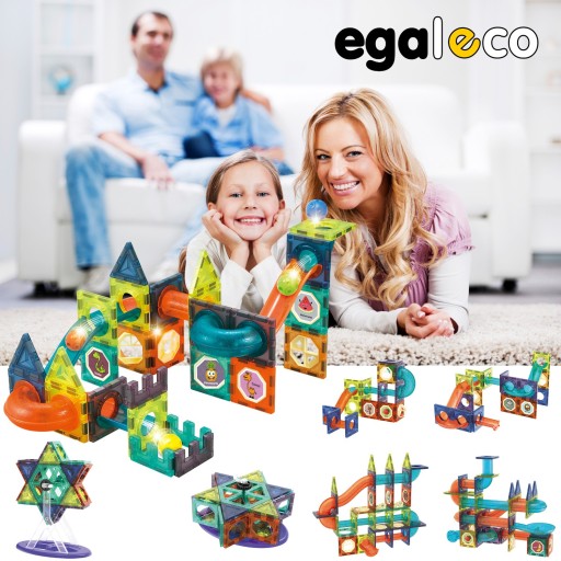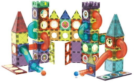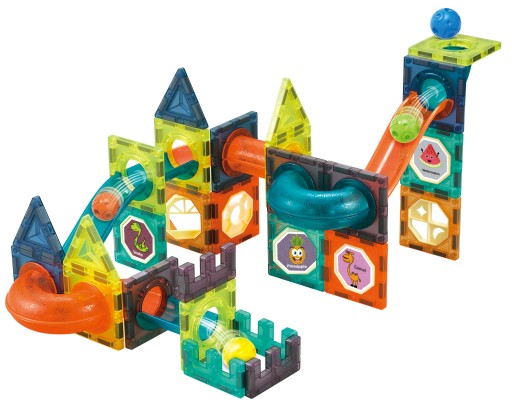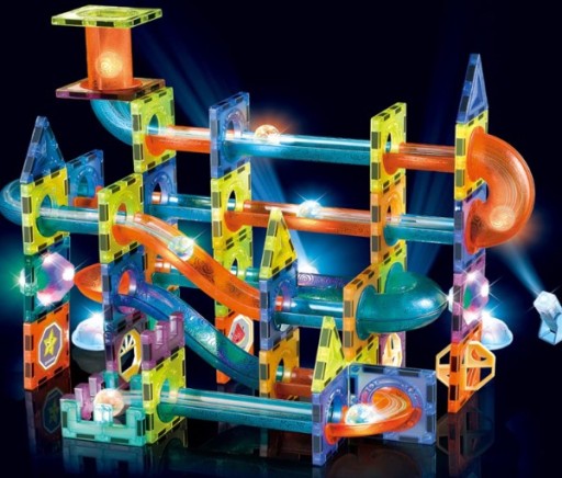 ⭕Zestaw magnetycznych klocków do budowy toru kulkowego.