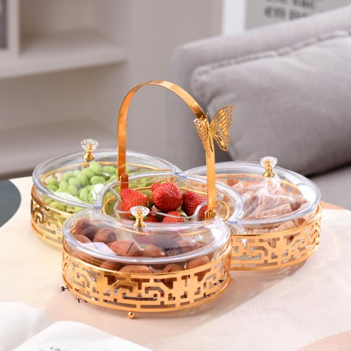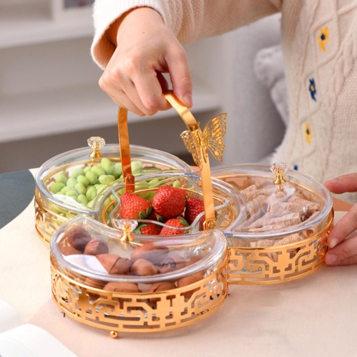 [Elegancki design] Podzielona taca na owoce w stylu europejskim z pokrywką ma wykwintną miskę w kształcie księżyca i gwiazdy, która dodaje elegancji każdemu pomieszczeniu. Elegancki stojak na motyle nie tylko dodaje dekoracyjnego akcentu, ale także zapewnia solidną podstawę dla tacy z owocami.