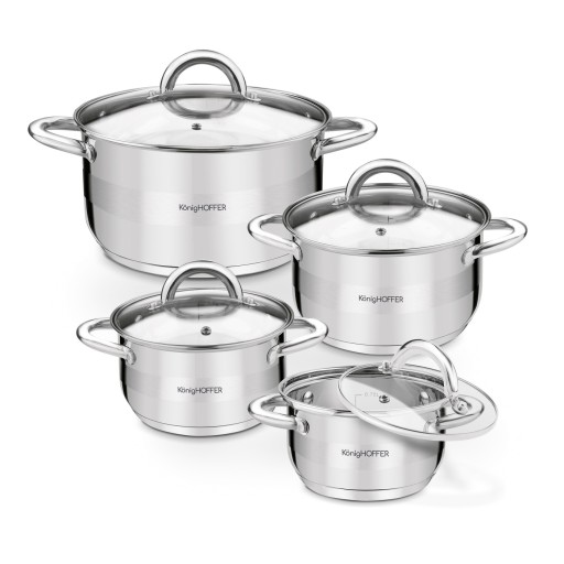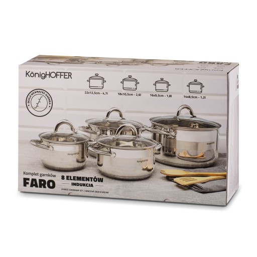 Stalowe garnki NA INDUKCJE zestaw garnków Z POKRYWKAMI 8 elementów Faro II
