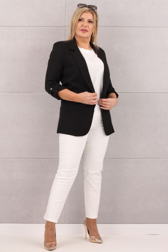 Ta wyjątkowa marynarka to esencja elegancji i nowoczesnego szyku. Jej dłuższy, smokingowy fason nadaje charakteru, podkreślając zarazem subtelność i ponadczasowy design. Wykonany z gładkiego materiału jest niezwykle uniwersalny, stanowiąc doskonałe dopełnienie zarówno codziennych jak i wieczorowych stylizacji.