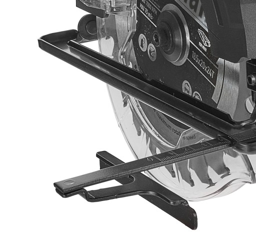 Pilarka została wyposażona w dwa wskaźniki linii cięcia. Jeden dla ustawienia 0° oraz jeden dla 45°.