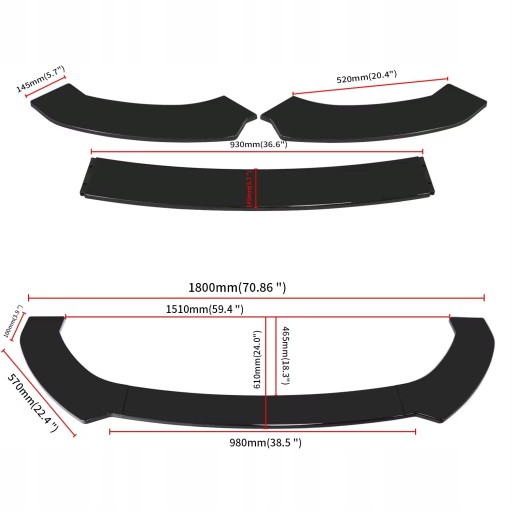 SPLITTER UNIWERSALNY CZARNY POŁYSK SUPER JAKOŚĆ BMW AUDI VW