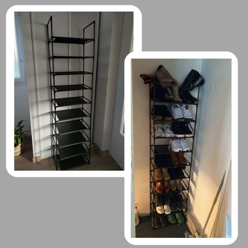 Spraw sobie ten regał z 10 półkami, który dzięki smukłemu kształtowi (45 x 28 x 173 cm) zajmuje niewiele miejsca, a jednocześnie oferuje mnóstwo miejsca do przechowywania. Uporządkuj swoje buty, bardzo nieskomplikowane!
