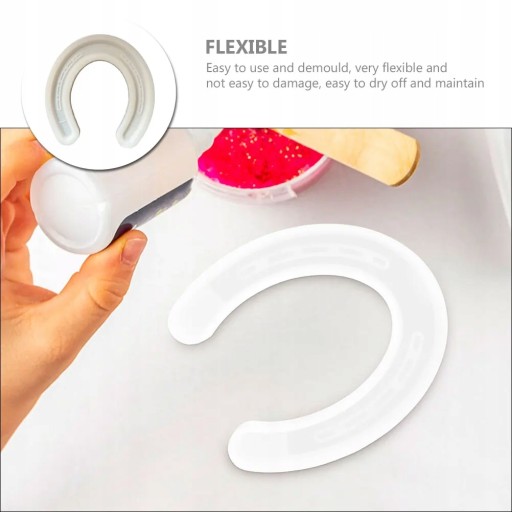 Ta praktyczna foremka na świece w kształcie podkowy. Forma wykonana jest z bezpiecznego, silikonowego, prostego i praktycznego, o dobrej teksturze. Dzięki rozsądnej strukturze i praktycznemu wzornictwu może z łatwością pomóc w tworzeniu kreatywnych świec w kształcie podkowy. Forma ma dobry kunszt i praktyczne funkcje.
