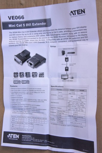 Удлинительный кабель Mini Cat5 DVI ATEN (20 м) VE066
