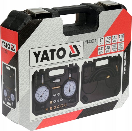 Zestaw mierników ciśnienia oleju silnika i skrzyni biegów 17 elementów YATO.