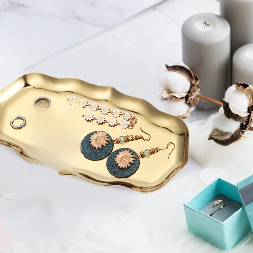✅Nasza stylowa taca na drobiazgi we wzór fal nadaje się do wyeksponowania różnorodnej biżuterii i drobnych akcesoriów. Wykonane ze stali nierdzewnej